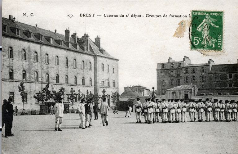 Vue générale de la cour de la caserne du Deuxième Dépôt des équipages de la flotte avant la revue. Carte postaleImmatriculation