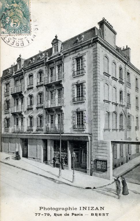 Vue de Brest : photographie Inizan, 77-79 rue de Paris. Carte postaleImmatriculation