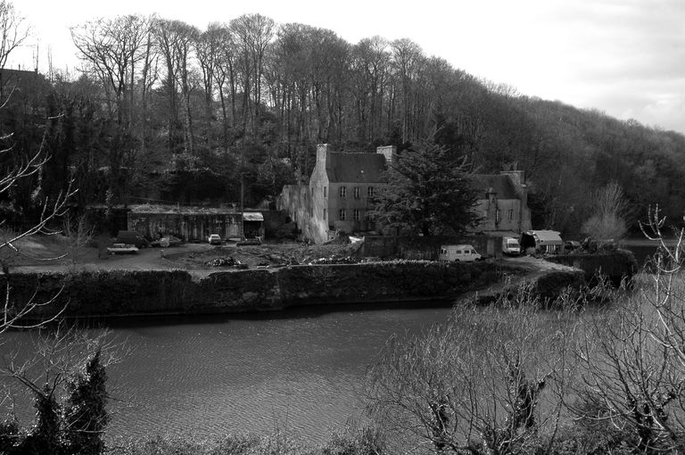 Vue de situation depuis l'est en 2005 : au premier plan, la Penfeld ; le quai et la cale de Kervallon sont dominés par la demeure dite "Maison du corsaire". A gauche de la maison, grand bunkerImmatriculation
