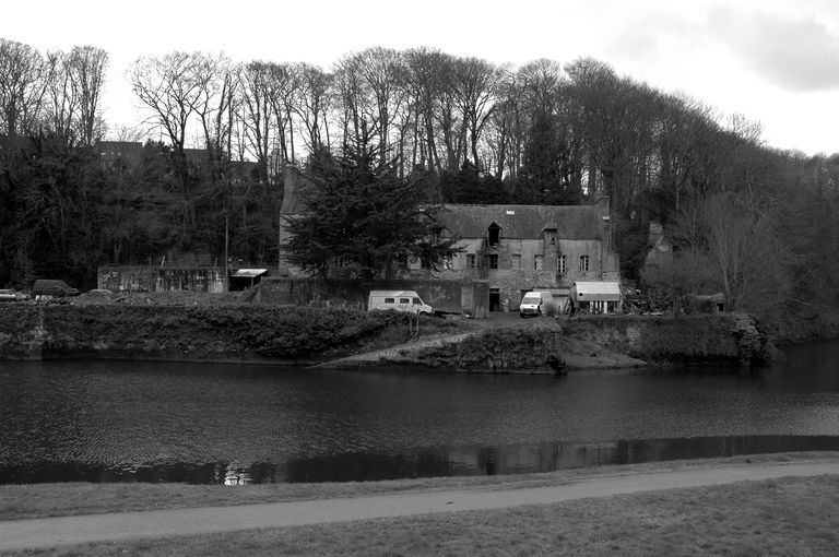 Vue générale depuis l'est en 2005 : au premier plan, la Penfeld ; le quai et la cale de Kervallon sont dominés par la demeure dite "Maison du corsaire". A gauche de la maison, grand bunkerImmatriculation