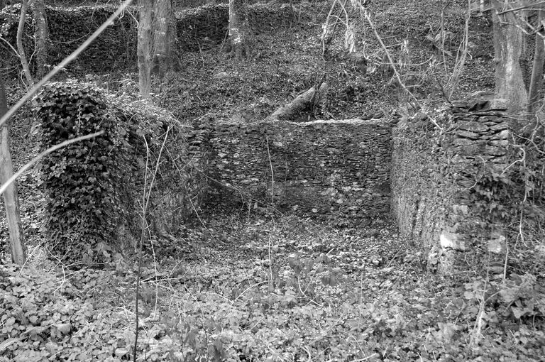 Vue d'une construction de plan rectangulaire en moellon de gneiss (état en 2005)Immatriculation
