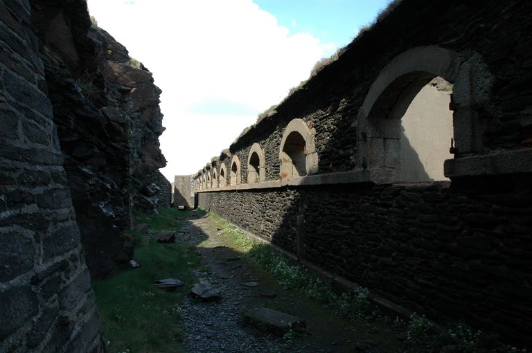 Vue du passage situé entre le rocher et la caserne. Les baies sont voutées en segment à claveaux. A l'extérieur, l'appui, les pièdoits et l'arc sont en graniteImmatriculation