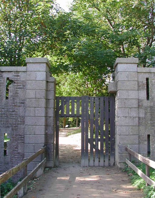Vue du fort du Dellec : entrée monumentale et enceinte percée de créneaux de fusilladeImmatriculation