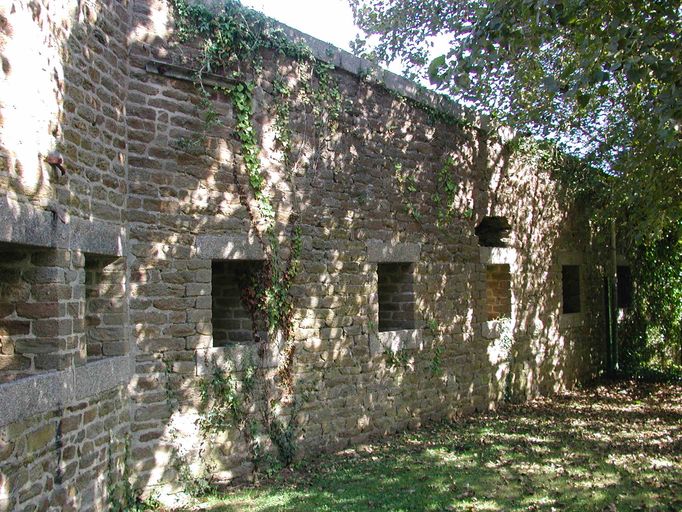 Vue du fort du Dellec : mur d'enceinte percé de créneaux de fusilladeImmatriculation
