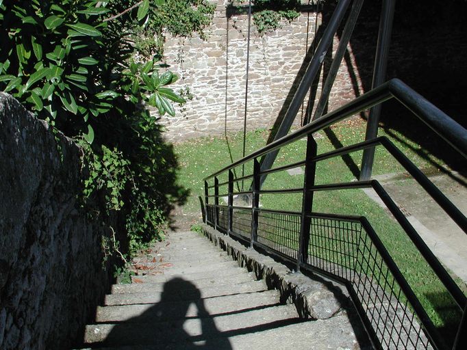 Vue du fort du Dellec : vestiges de la caserne (escaliers) aujourd'hui réhabilitésImmatriculation