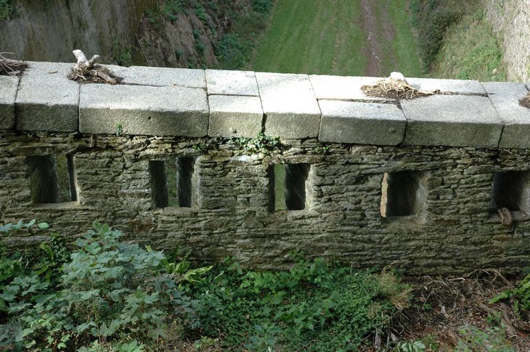 Vue de l'ouvrage à cornes de Quéliverzan : créneaux de fusilladeImmatriculation