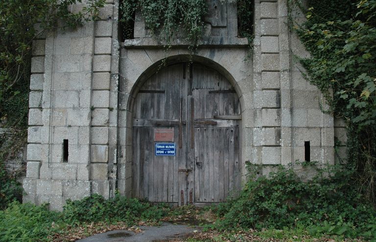 Vue du fort de Penfeld : la porte autrefois précédée d'un pont-levis est flanquée par des créneaux de fusilladeImmatriculation