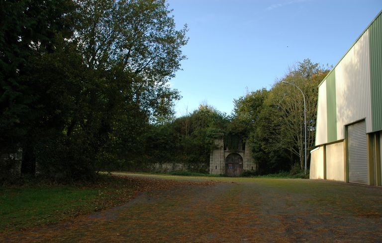 Vue générale de l'entrée du fort de Penfeld : le fossé sec a été comblé après la Seconde Guerre Mondiale tandis que des bâtiments parasites ont été construits à proximité immédiateImmatriculation