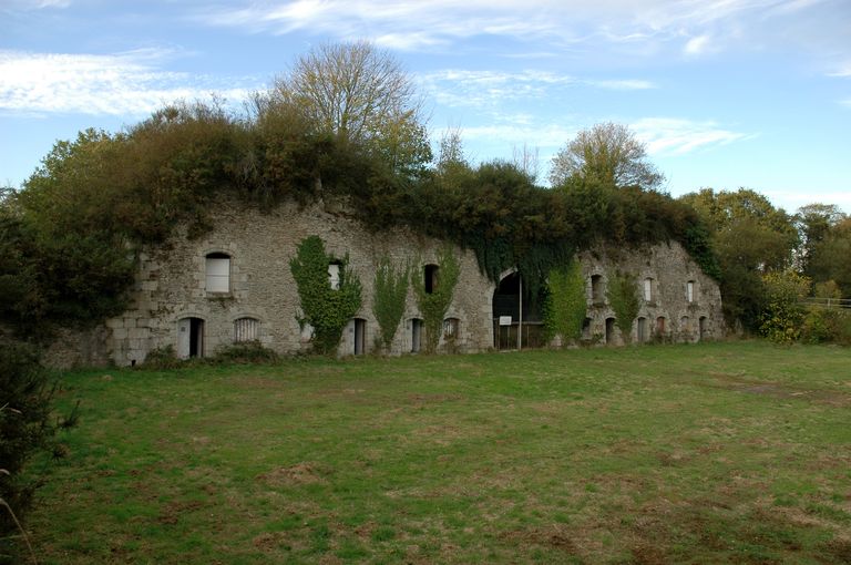 Vue du fort de Penfeld : le cavalier regroupe des casernements voûtés à l'épreuve de la bombe et une batterie d'artillerie à ciel ouvertImmatriculation