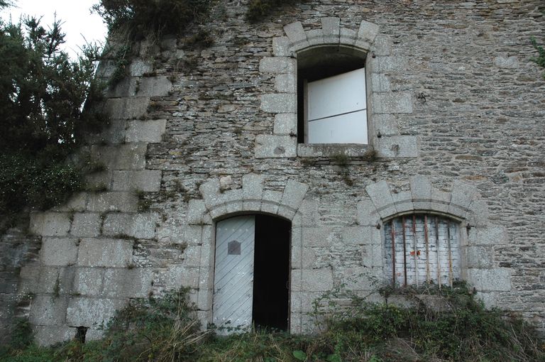 Vue du fort de Penfeld : exemple de caserne voutée avec entresol sur corbeaux accessible par une échelle. La pièce dotée d'une cheminée au rez-de-chaussée comporte une porte et deux baies ouvrant sur la place d'armesImmatriculation