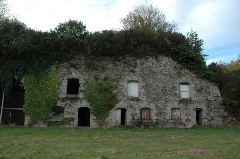 Vue du fort de Penfeld : le cavalier regroupe des casernements voûtés à l'épreuve de la bombe et une batterie d'artillerie à ciel ouvertImmatriculation