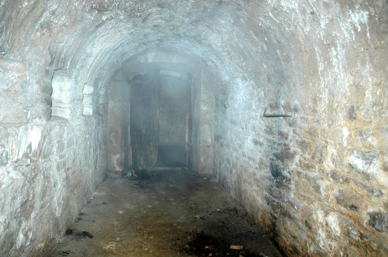 Vue du fort de Penfeld : la caponnière est. Elle est percée de nombreux créneaux de fusillade vers le nordImmatriculation