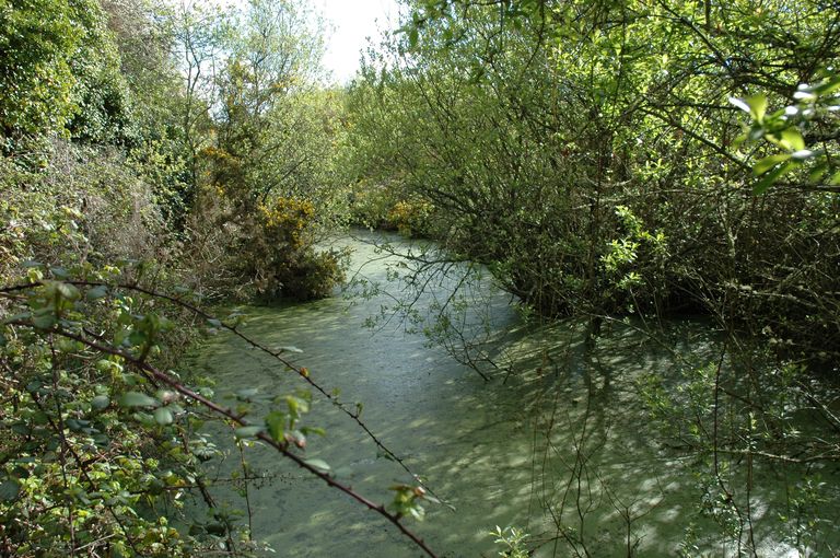 Vue générale des lignes de Quélern : fossé en eau au pied de la porte principale dite porte de CamaretImmatriculation