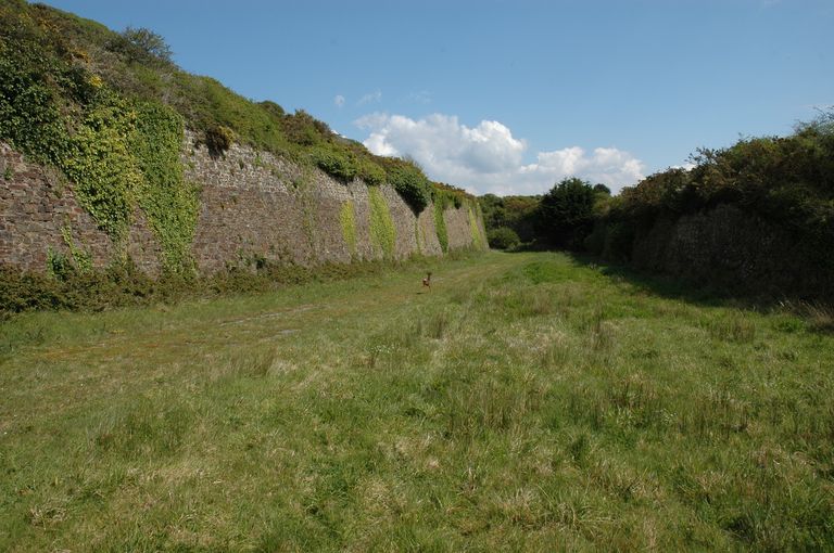 Vue générale des lignes de Quélern : fossé sec de la demi-lune ouestImmatriculation