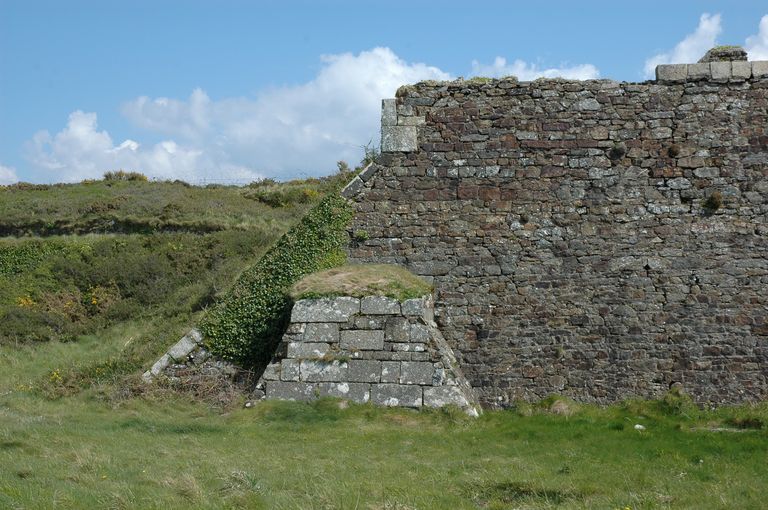 Vue des lignes de Quélern : entrée des casernements de la batterie de côte ouest (remaniée durant la Seconde Guerre Mondiale)Immatriculation