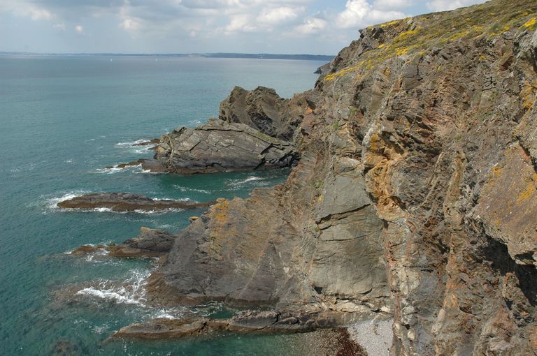 Vue des lignes de Quélern : la falaise au pied de la casemate implantée à l'extrémité ouestImmatriculation