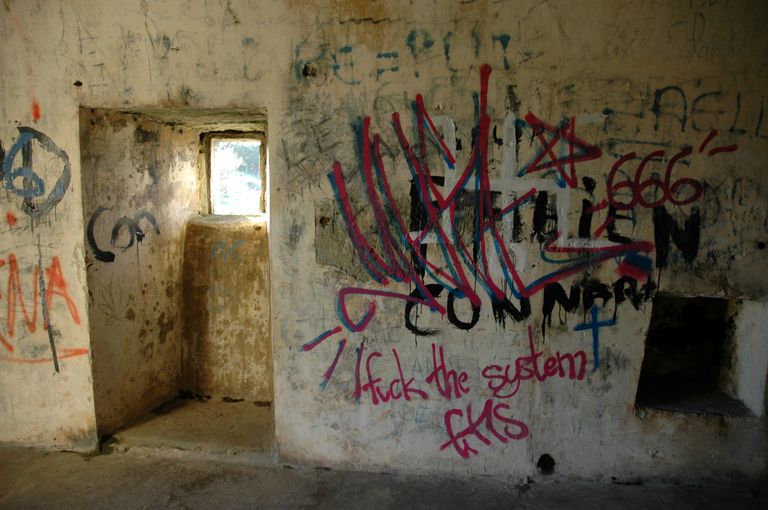 Vue intérieure du corps de garde de Guissény : baie et nicheImmatriculation