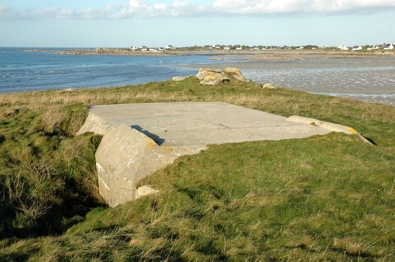 Vue de l'ensemble fortifié de Beg ar Skeiz : abri bétonné de type H 702Immatriculation