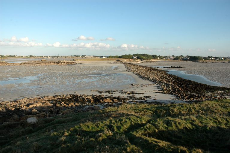 Vue de l'ensemble fortifié de Beg ar Skeiz : vestiges de la digueImmatriculation