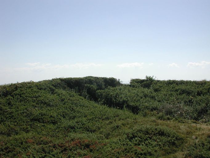 Vue du réduit de batterie de côte de l'île de l'Aber : la batterie extérieure envahie par la végétationImmatriculation