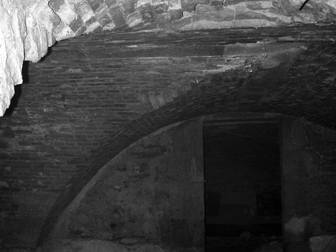 Roscanvel, pointe de Cornouaille : tour-modèle n° 1, premier niveau voûté en briques, pilier centralImmatriculation