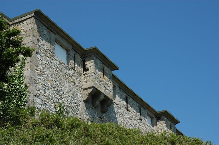 Vue du corps de garde crénelé : mur oriental (état en 2005)Immatriculation