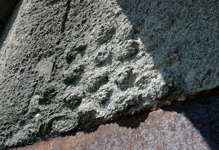 Vue de l'un des deux bunkers - casemates de type 671 (état en 2005). Le traitement du béton participait du camouflage du bunkerImmatriculation
