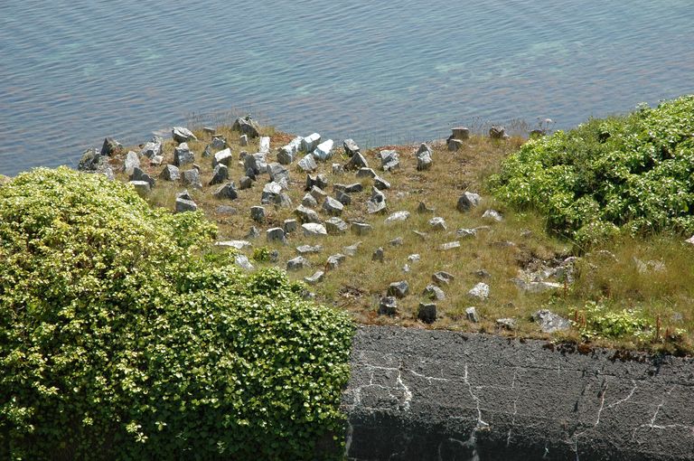 Vue de la dalle de couverture du bunker - casemate de type 671 sud (état en 2005). Les pierres participaient du camouflage du bunkerImmatriculation