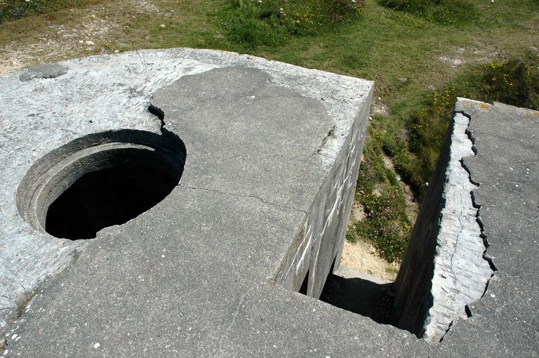 Vue de l'accès du poste d'observation et de mitrailleuse dit Ringstand ou Tobruk du bunker - poste de direction de tir de type 636a (état en 2005)Immatriculation
