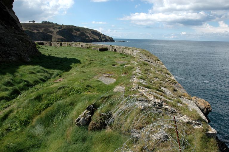 Vue de la batterie de Cornouaille : parapet. En arrière-plan : l'entrée du goulet de BrestImmatriculation