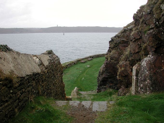 Vue de la batterie de Cornouaille : terre-plein de la batterie depuis les grands escaliers aménagés le long de la falaise (fin 17e siècle - début 18e siècle)Immatriculation