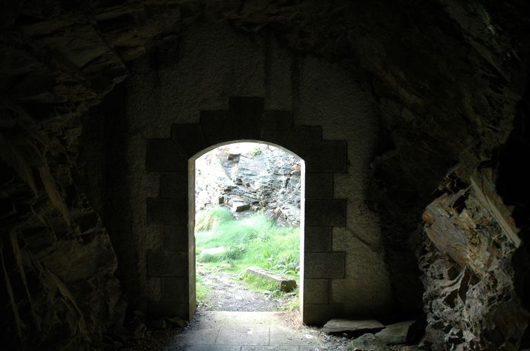 Vue de la batterie de Cornouaille : soute à munitions, ouvrage creusé dans le roc et accessible par un couloir de 2,3 mètres de largeur (3e quart 19e siècle)Immatriculation