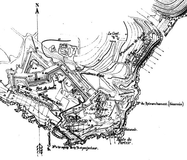 Plan (détail) de l'ensemble fortifié du Portzic, Direction d'Artillerie du génie de Brest, fin 19e siècleImmatriculation