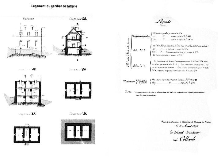 Plan et coupes du logement du gardien du fort du de terre du Portzic, Direction d'Artillerie du génie de Brest, 1893, par le colonel Directeur d'Artillerie : CollombImmatriculation
