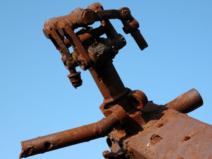Vue de détail du canon de 4 cm Flak Bofors (état en 2005)Immatriculation