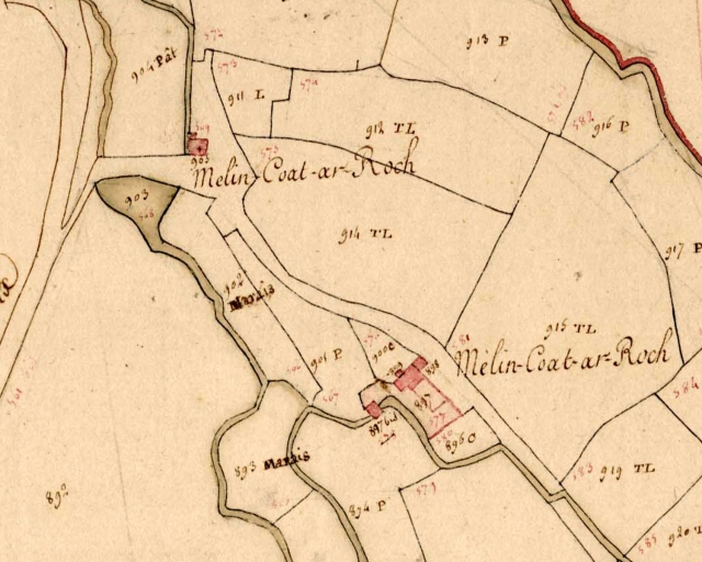 Extrait du cadastre de 1812, section B4, (A. D. Finistère, 3 P 41)Immatriculation