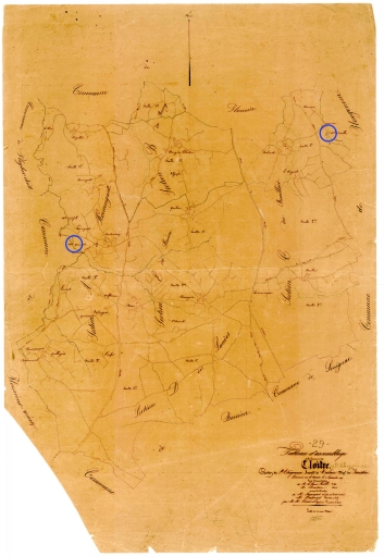 Localisation des moulins à eau en 1837 (fond : tableau d'assemblage)Immatriculation