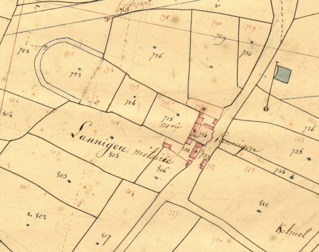 Le manoir de Lannigou sur la cadastre ancienImmatriculation