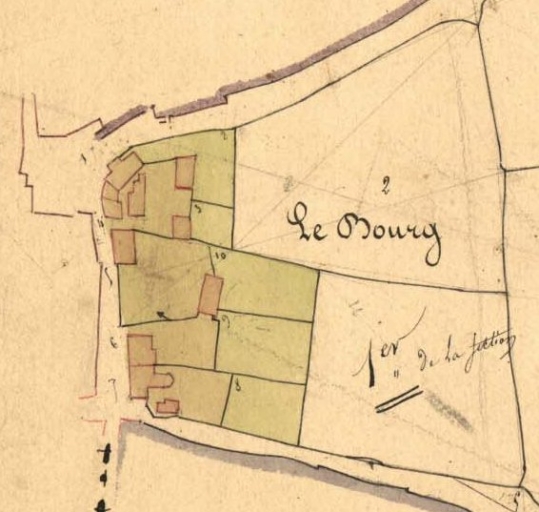 La partie nord-est du bourg. Extrait du cadastre, section F 1 (A.D. Finistère, 3 P 203)Immatriculation
