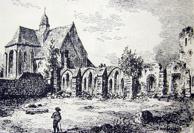 Les ruines du cloître. Etat supposé en 1830. Dessin de Louis Le Guennec, vers 1929Immatriculation
