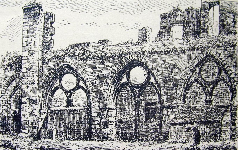 Ruines du cloître. Etat supposé en 1830. Dessin de Louis Le Guennec, vers 1929Immatriculation