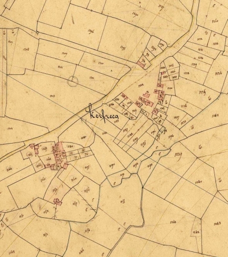 Le hameau en 1837. Extrait du cadastre, section B 2 (A.D. Finistère, 3 P 203).Immatriculation