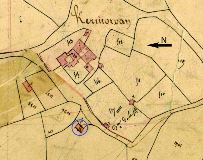 Localisation sur le cadastre de 1837, section K 1 (A. D. Finistère, 3 P 203)Immatriculation