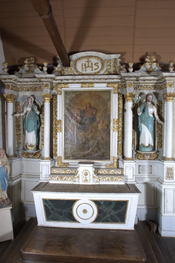 Ensemble de l'autel de la Vierge : autel, retable, tabernacle, 2 gradins d'autel et degré d'autel,