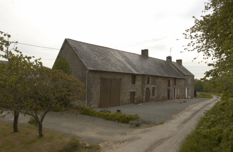Maisons et ferme : alignement de trois logis, Theuré (Sens-de-Bretagne),