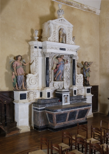 Ensemble de l'autel de sainte Anne et des archanges : autel, tabernacle, 2 gradins d'autel, retable,