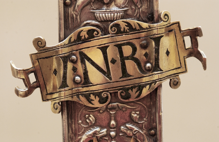Croix de procession : avers, vue du titulusImmatriculation