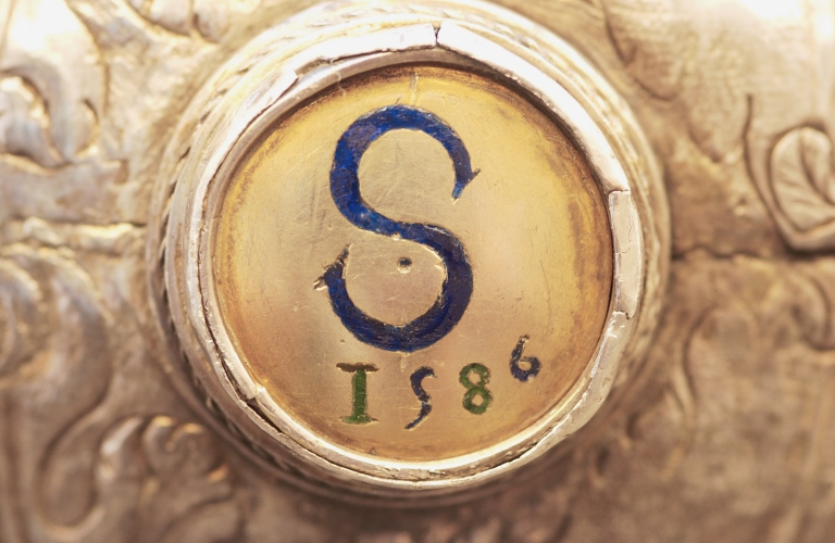 Croix de procession : bouton du noeud, lettres S 1586Immatriculation