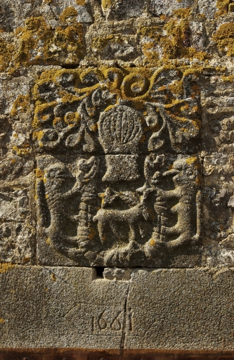 Détail de la date et du blason surmontant la porte du logisImmatriculation