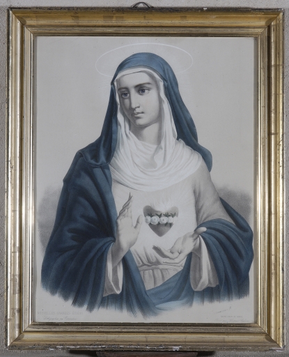 Ensemble de 2 estampes encadrées : Sacré Coeur de Jésus, Sacré Coeur de Marie,